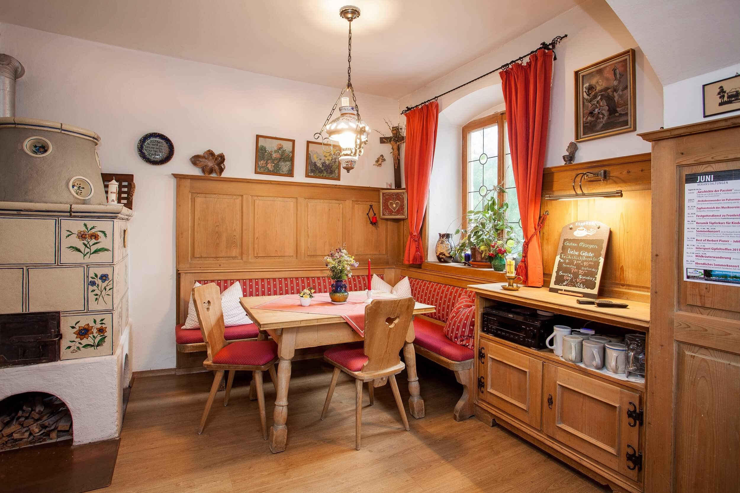 Im Haus begegnet man Bildern und Schnitzarbeiten aus drei Jahrhunderten, von lokalen und regionalen Künstlern. Die Verbindung von klassisch Traditionellem