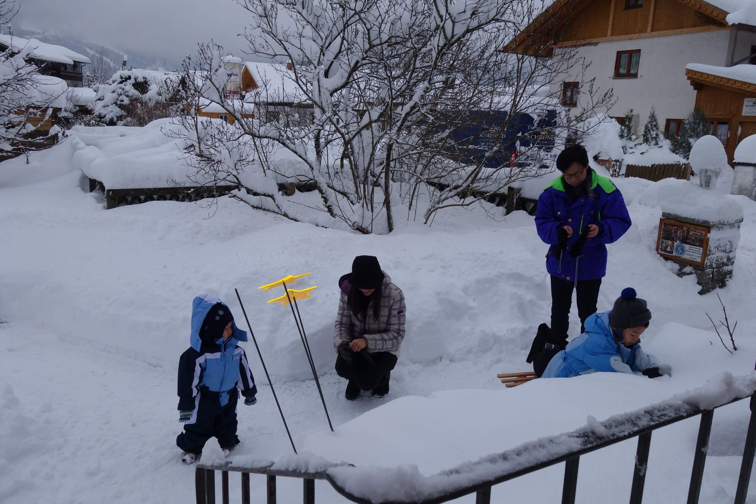Schon der Weg zum Haus führt durch den schönen Garten mit Blumenbeeten, Apfelbäumen und hohen Tannen, mit Kinderspielplatz und Gartenhäuschen, mit Grillplatz und Ruhewiese. Dann gelangt man auf die Ostterrasse, vorgelagert dem wintergartenähnlichen neuen Speisesaal. Hier kann man in der Sonne frühstücken, entspannen oder einfach nur mit Blick auf die Berge träumen. Dazu braucht es freilich Ruhe, und die gibt es bei uns wirklich. Da stört kein Verkehr, das Lauteste ist manchmal das Gezwitscher der Vögel.